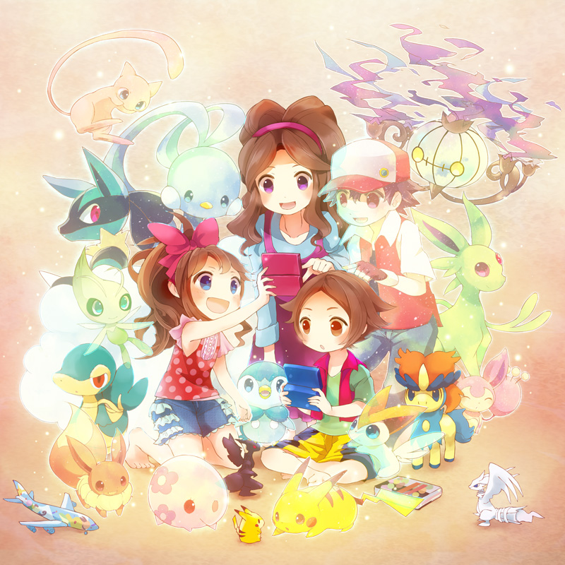 10s 1990s_(style) 2boys 2girls aircraft airplane altaria alternate_color baseball_cap blue_eyes brown_hair celebi chandelure child cocoloco eevee espeon gen_1_pokemon gen_2_pokemon gen_3_pokemon gen_4_pokemon gen_5_pokemon hairband handheld_game_console hat hilbert_(pokemon) hilda_(pokemon) keldeo keldeo_(ordinary) legendary_pokemon long_hair lucario mew_(pokemon) multiple_boys multiple_girls munna mythical_pokemon nintendo nintendo_ds pikachu piplup pokemon pokemon_(creature) pokemon_black_and_white pokemon_red/green/blue/yellow ponytail purple_eyes red_(pokemon) red_eyes reshiram retro_artstyle shiny_pokemon short_hair skitty snivy toy vest victini zekrom