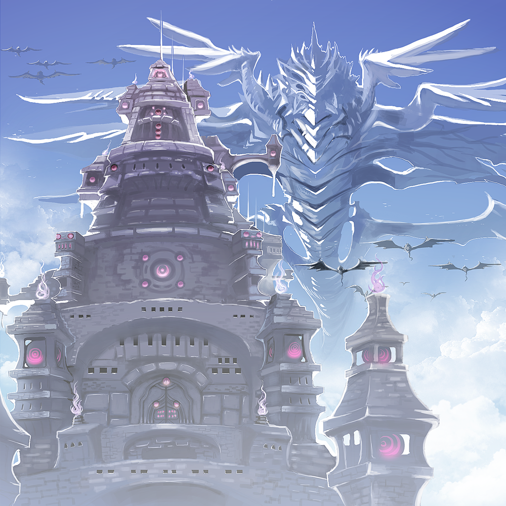 blue_sky building castle cloud creature day grand_scale nicole_pmonachi no_humans pixiv_fantasia pixiv_fantasia_sword_regalia scenery sky