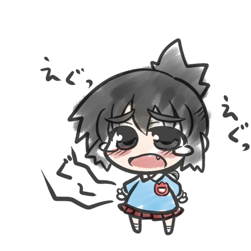 1girl aged_down black_hair blush child crying eyebrows fang female_focus grey_eyes hair_up lowres oono_mayu open_mouth pixiv_azriel skirt solo tears yanagi_(nurikoboshi)