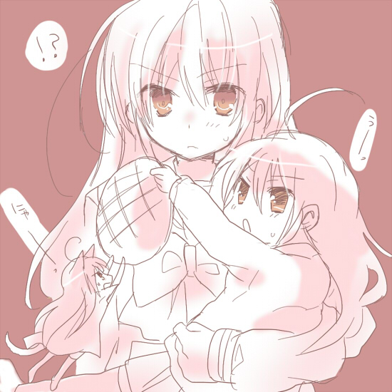 3girls bread chibi child food long_hair melon_bread monochrome multiple_girls multiple_persona school_uniform serafuku shakugan_no_shana shana tachitsu_teto