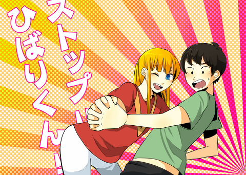 2boys blue_eyes girly_boy holding_hands long_hair lowres multiple_boys oozora_hibari sakamoto_kousaku stop!_hibari-kun trap yaoi