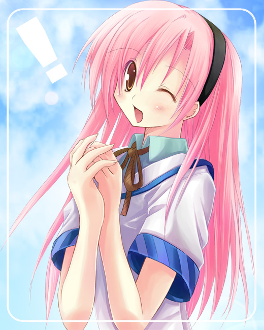 00s 1girl female_focus kannon_ouji long_hair okuwaka_tsubomi one_eye_closed open_mouth pink_hair solo strawberry_panic! wink