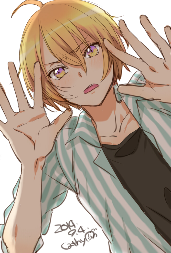 10s 1boy 2014 ahoge artist_name bad_id bad_pixiv_id blonde_hair blush dated love_stage!! male_focus play_r sena_izumi_(love_stage!!) short_hair solo sweat