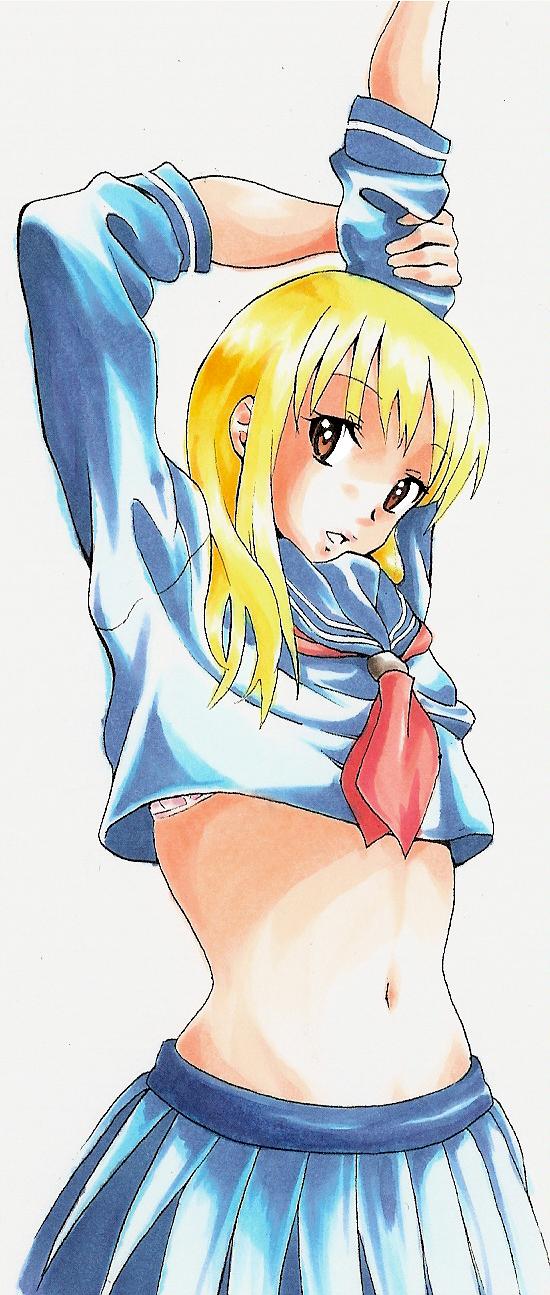 1girl bad_id bad_pixiv_id blonde_hair brown_eyes female_focus highres jpeg_artifacts long_hair midriff oozora_hibari school_uniform solo stop!_hibari-kun trap ueyama_michirou