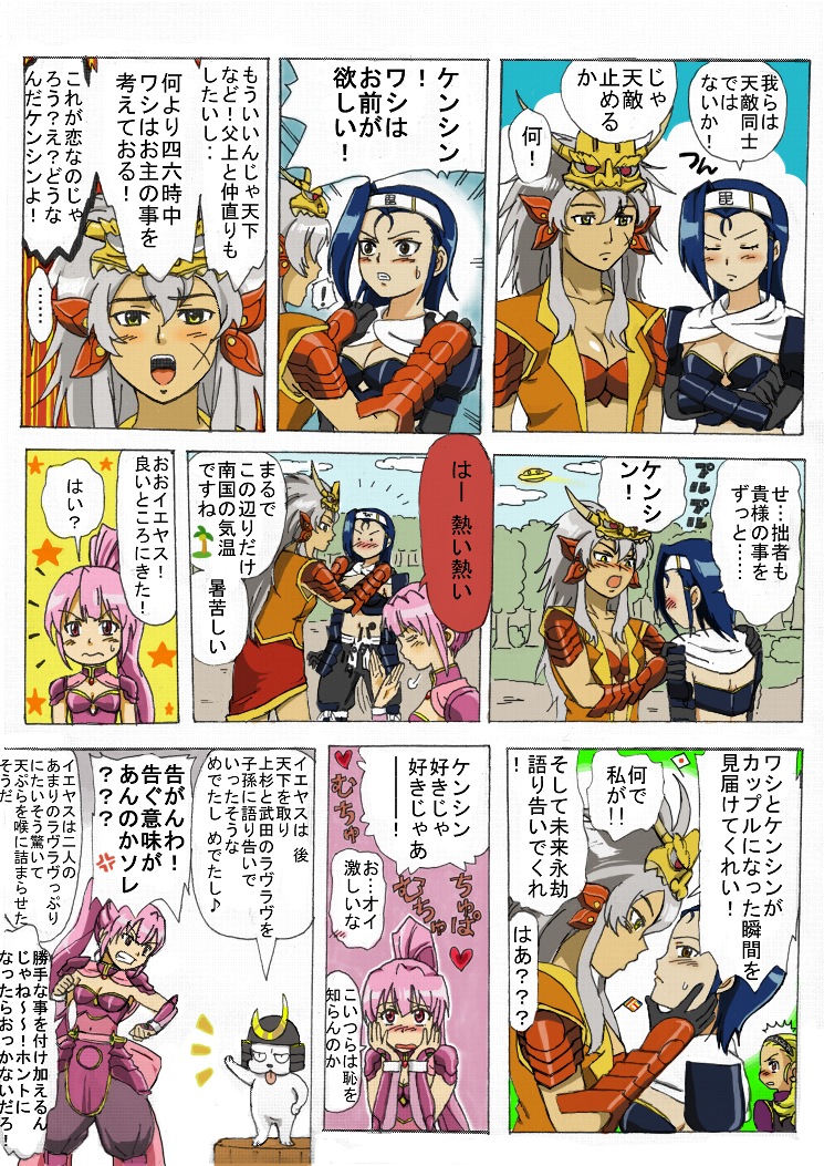 10s bad_id bad_pixiv_id blush comic imminent_kiss japanese_clothes multiple_girls sengoku_otome shiro_(sengoku_otome) tabby_(pokopoko117) takeda_shingen_(sengoku_otome) tokugawa_ieyasu_(sengoku_otome) translation_request uesugi_kenshin_(sengoku_otome) yuri