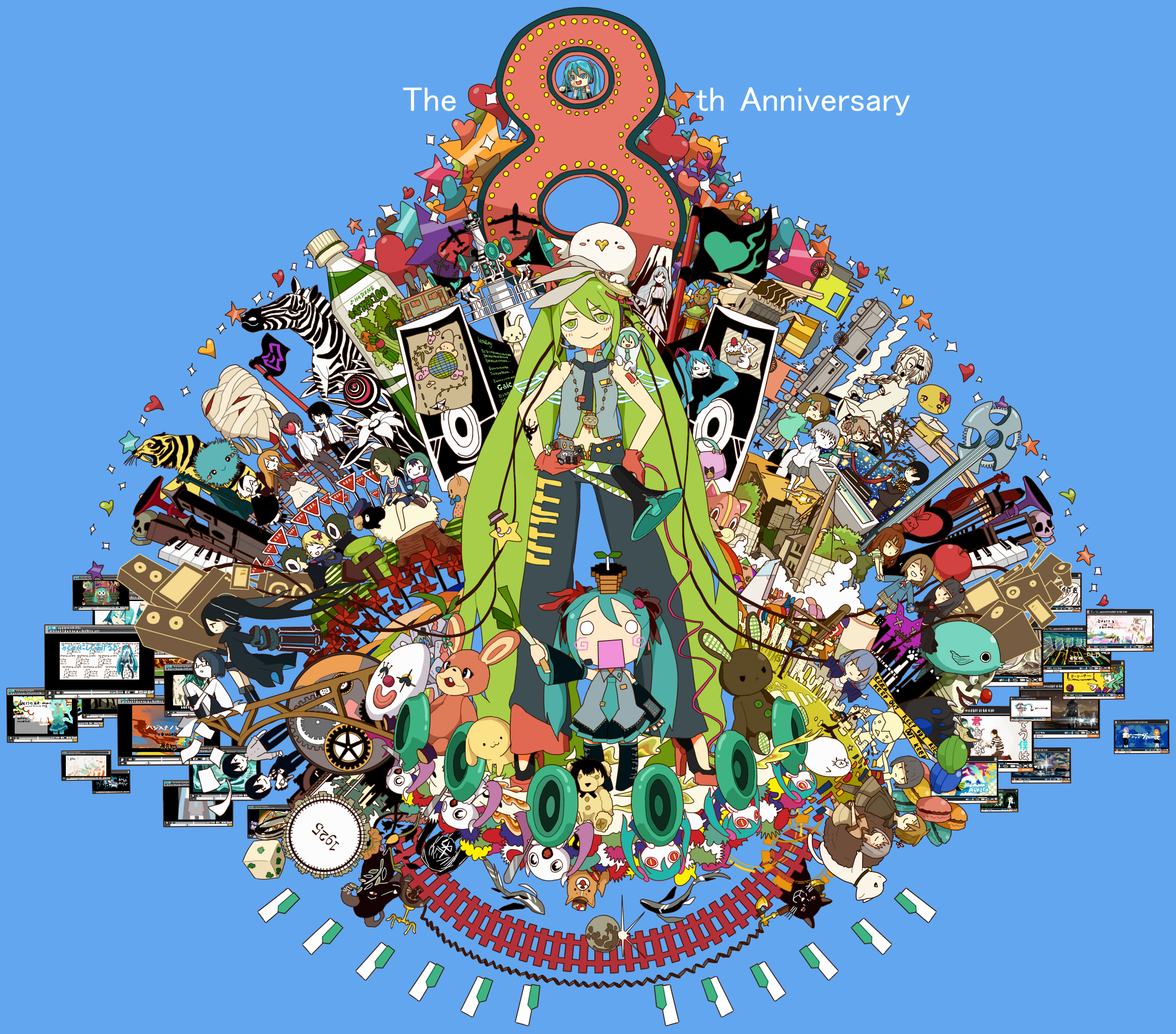 10s 1925_(vocaloid) 3331_(vocaloid) 6+boys 6+girls aaaaaaaaaaaaaa_(vocaloid) absurdly_long_hair aimaina anniversary aqua_hair badbye_(vocaloid) bandages bird black_hair black_rock_shooter black_rock_shooter_(character) blue_background bottle braid calc._(vocaloid) candy cat chibi clock_lock_works_(vocaloid) clown clown_mask do_re_mi_fa_rondo_(vocaloid) dog doremifa_rondo_(vocaloid) doushite-chan envy_cat_walk_(vocaloid) fish food full_body gaikotsu_gakudan_to_riria_(vocaloid) gas_mask gloves glow_(vocaloid) green_eyes green_hair hachune_miku hannyashingyou_pop_(vocaloid) hatsune_miku hatsune_miku_no_shoushitsu_(vocaloid) headset heart hello/how_are_you_(vocaloid) hello_planet_(vocaloid) high_heels highres instrument irony_(vocaloid) kagerou_days_(vocaloid) karakuri_pierrot_(vocaloid) kimi_ijou_boku_miman_(vocaloid) koi_wa_sensou_(vocaloid) kono_fuzaketa_subarashiki_sekai_wa_boku_no_tame_ni_aru_(vocaloid) last_night_good_night_(vocaloid) lol_-lots_of_laugh-_(vocaloid) lollipop long_hair lost_and_found_(vocaloid) macaron macaron_(vocaloid) mask megaphone miku_miku_ni_shite_ageru_(vocaloid) mikudayo miracle_paint_(vocaloid) multiple_boys multiple_girls necktie nisoku_hokou_(vocaloid) nyanyanyanyanyanyanya!_(vocaloid) o_o odds_&_ends_(vocaloid) open_mouth pants pinwheel plant poppippoo_(vocaloid) potted_plant pylori_kin_no_uta_(vocaloid) q_(vocaloid) rabbit rekka_(drm0008) ren'ai_saiban_(vocaloid) rinne_(vocaloid) road_sign romeo_to_cinderella_(vocaloid) saihate_(vocaloid) seal_(animal) senbon-zakura_(vocaloid) shinkai_summit_(vocaloid) shinpakusuu_#0822_(vocaloid) shiteyan'yo sign simple_background songover spica_(vocaloid) spring_onion standing star_(symbol) starduster_(vocaloid) streaming_heart_(vocaloid) stuffed_toy torinoko_city_(vocaloid) train trumpet twintails umi_yuri_kaiteitan_(vocaloid) very_long_hair violin vocaloid wonderland_to_hitsuji_no_uta_(vocaloid) world's_end_umbrella_(vocaloid) world_is_mine_(vocaloid) yuuhi_zaka_(vocaloid) zebra