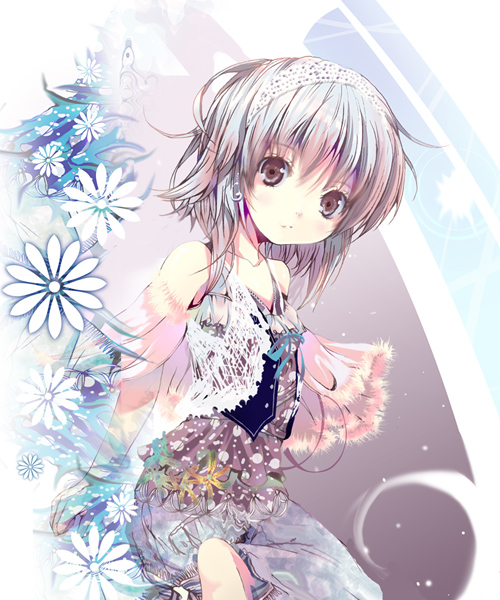 brown_eyes flower hairband lace_hairband original short_hair silver_hair solo yamamoto_nori