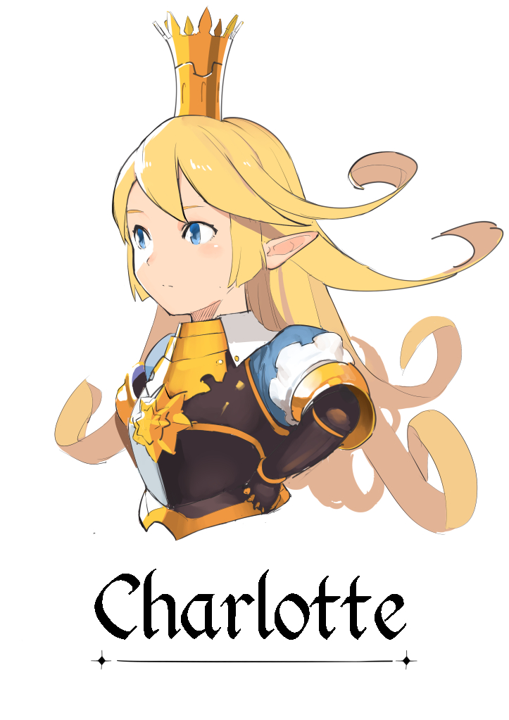 10s 1girl armor blonde_hair blue_eyes blush breastplate charlotta_(granblue_fantasy) crown female_focus granblue_fantasy hand_on_own_hip harvin level.21 long_hair pointy_ears puffy_short_sleeves puffy_sleeves short_sleeves simple_background solo upper_body white_background