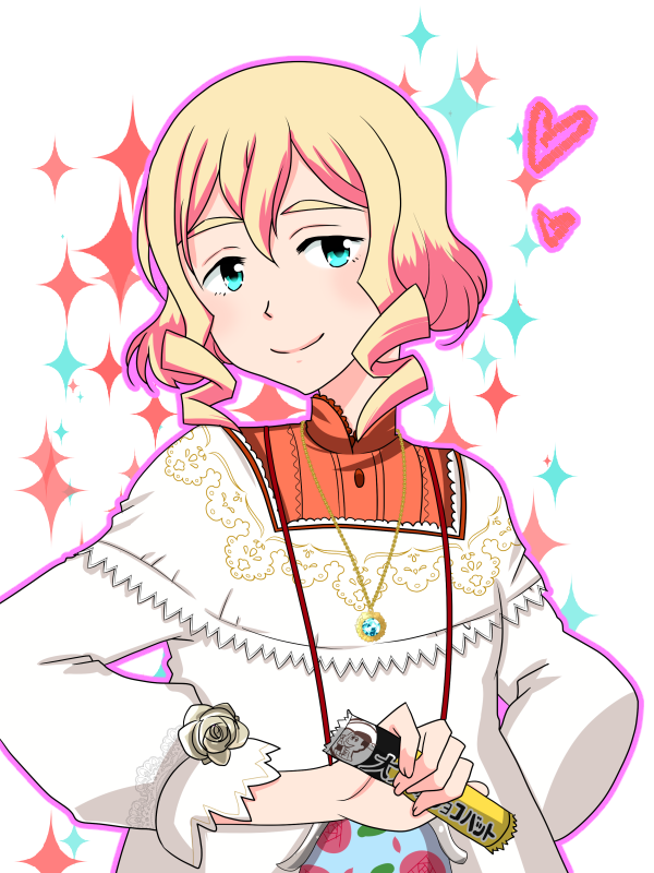 10s 1boy andou_mario androgynous apron blonde_hair blue_eyes blush candy drill_hair food ichiya_(epic) idolmaster idolmaster_side-m jewelry kappougi male_focus necklace short_hair smile solo