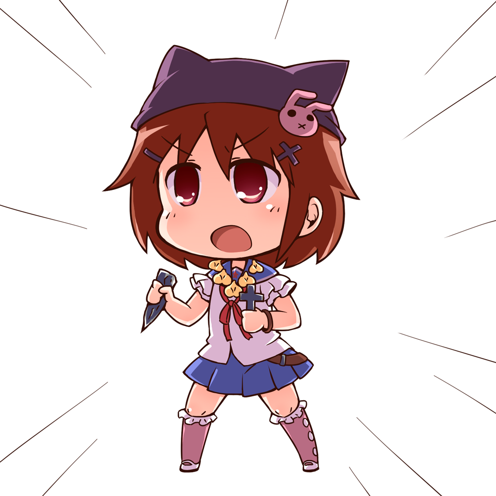 1girl brown_hair company_connection cosplay crossover female_focus gakkou_gurashi! hair_ornament hairclip hat jinnouchi_akira kill_me_baby manga_time_kirara oribe_yasuna school_uniform short_hair solo takeya_yuki takeya_yuki_(cosplay) x_hair_ornament