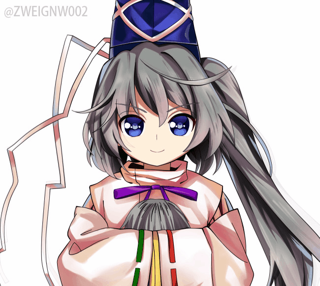 1girl animated animated_gif emofuri grey_hair hat kisaragi_zwei mononobe_no_futo smile touhou ugoira