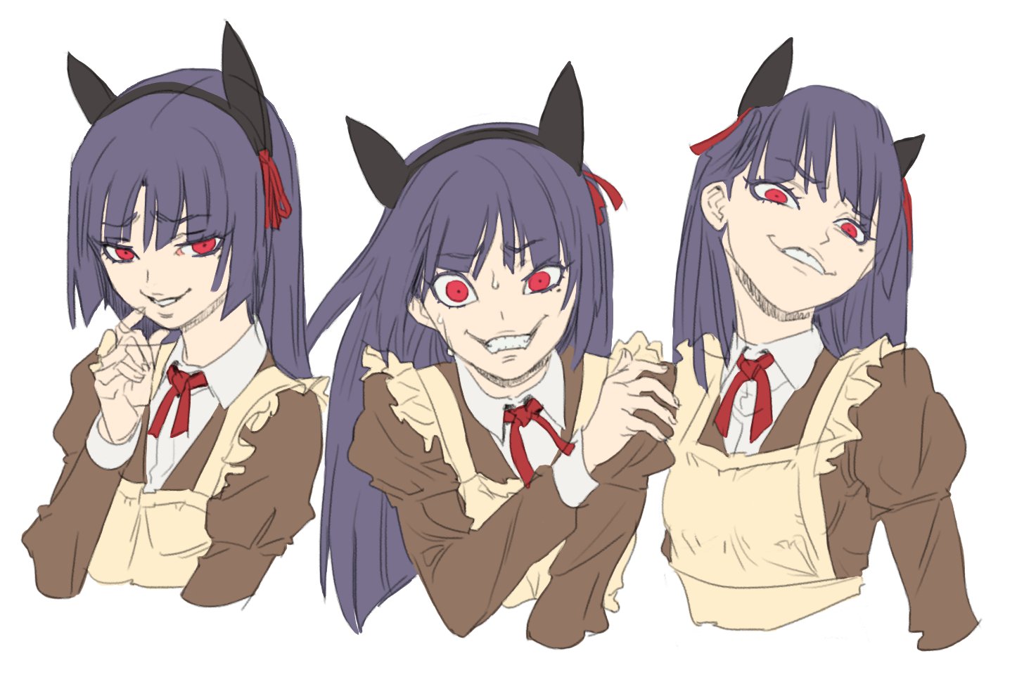 1girl animal_ears apron artist_request drawfag evil_smile fake_animal_ears female_focus forced_smile gokou_ruri mole ore_no_imouto_ga_konna_ni_kawaii_wake_ga_nai red_eyes smile solo source_request sweat yandere