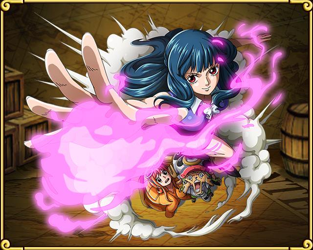 1boy 2girls aged_down bare_legs blue_hair breasts ein_(one_piece) energy large_breasts long_hair looking_at_viewer multiple_girls nami_(one_piece) one_piece one_piece:_treasure_cruise one_piece_film:_z orange_hair scar short_shorts shorts smile tony_tony_chopper