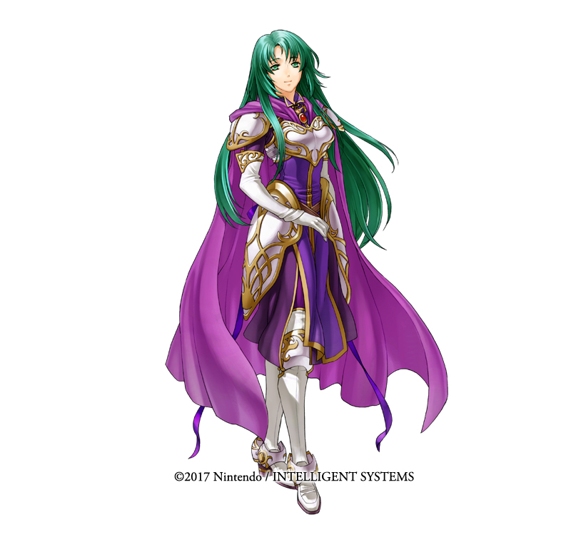 1girl armor boots breastplate cape cecilia_(fire_emblem) company_name female_focus fire_emblem fire_emblem:_the_binding_blade fire_emblem_heroes full_body gloves green_eyes green_hair kita_senri long_hair nintendo official_art simple_background solo white_armor white_background