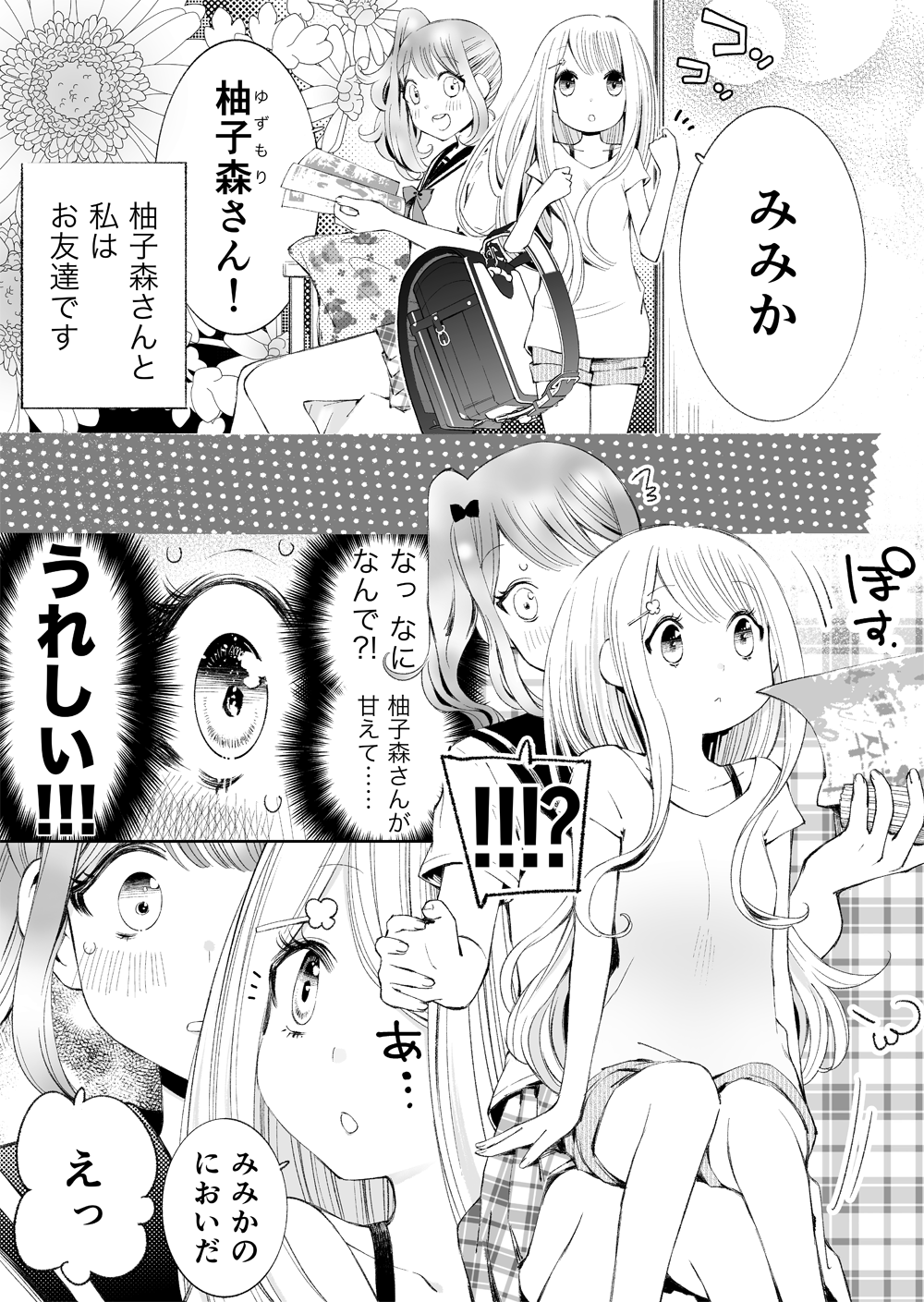 !? 2girls ^^^ age_difference blush child comic greyscale highres monochrome multiple_girls nebukuro noma_mimika onee-loli sexually_suggestive sitting sitting_on_lap sitting_on_person sweatdrop yuri yuzumori-san yuzumori_kaede