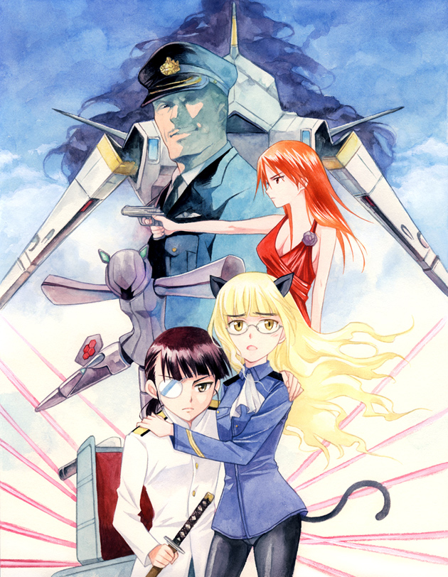 00s 1boy 4girls agahari animal_ears black_hair black_pantyhose blonde_hair dress eyepatch glasses gun handgun holding holding_sword holding_weapon long_hair mecha minna-dietlinde_wilcke multiple_girls neuroi neuroi_girl panties panties_under_pantyhose pantyhose perrine_h._clostermann pistol pocket_pistol red_hair robot sakamoto_mio semi-automatic_pistol strike_witches sword tail traditional_media trevor_maloney underwear weapon wheelchair world_witches_series