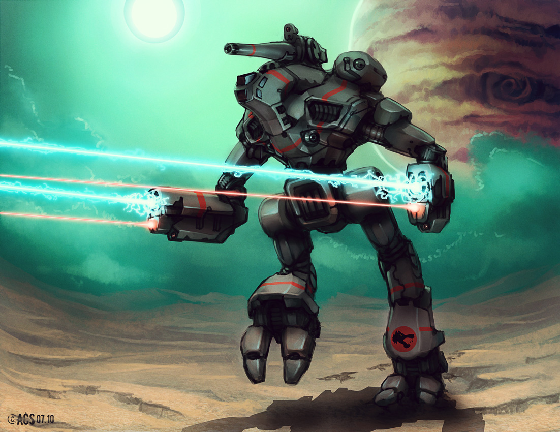 2010 anthony_scroggins_(shimmering_sword) arm_cannon battle battletech commentary dated energy_cannon insignia marauder_(battletech) mecha non-humanoid_robot realistic robot science_fiction walker_(robot) weapon