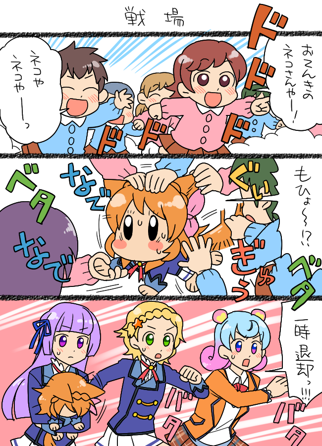 4girls aikatsu! aikatsu!_(series) animal_ears blush_stickers cat_ears cat_tail chibi comic doujima_nina hikami_sumire koyama_shigeru multiple_girls ozora_akari shinjo_hinaki tail translation_request