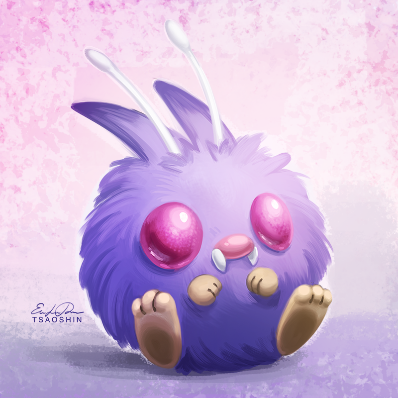 eric_proctor fangs full_body gen_1_pokemon looking_at_viewer nintendo no_humans pokemon pokemon_(creature) pokemon_focus purple_background red_eyes signature sitting solo venonat