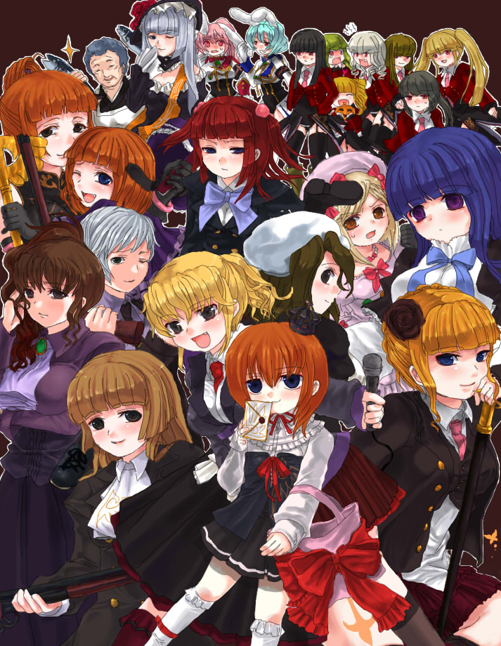 00s 6+girls angry aqua_hair asmodeus_(umineko) bag beatrice_(umineko) beelzebub_(umineko) belphegor_(umineko) beret black_hair blonde_hair blue_hair blush brown_hair chiester410 chiester45 chiester_sisters crown dress eva_beatrice everyone fish frederica_bernkastel green_hair happy hat hime_cut hug lambdadelta leviathan_(umineko) long_hair lucifer_(umineko) mammon_(umineko) multiple_girls orange_hair pink_hair ponytail red_hair ribbon satan_(umineko) serious shannon_(umineko) short_hair silver_hair smile staff stakes_of_purgatory twintails umineko_no_naku_koro_ni ushiromiya_eva ushiromiya_jessica ushiromiya_kyrie ushiromiya_maria ushiromiya_natsuhi ushiromiya_rosa very_long_hair virgilia_(umineko)
