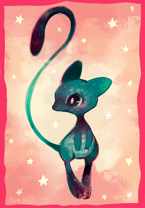 alternate_color blue_eyes blue_skin blue_theme border colored_skin floating full_body gen_1_pokemon glitchedpuppet high_contrast legendary_pokemon looking_to_the_side mew_(pokemon) mythical_pokemon nintendo no_humans pink_background pink_border pink_theme pokemon pokemon_(creature) pokemon_focus pokemon_rgby shiny_pokemon signature smile solo star_(symbol) star_symbol_background