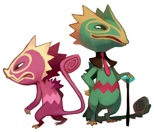 2others bow bowtie cane commentary full_body gen_3_pokemon glitchedpuppet kecleon multiple_others nintendo pk_(pmd-explorers) pokemon pokemon_(creature) pokemon_mystery_dungeon shadow standing transparent_background