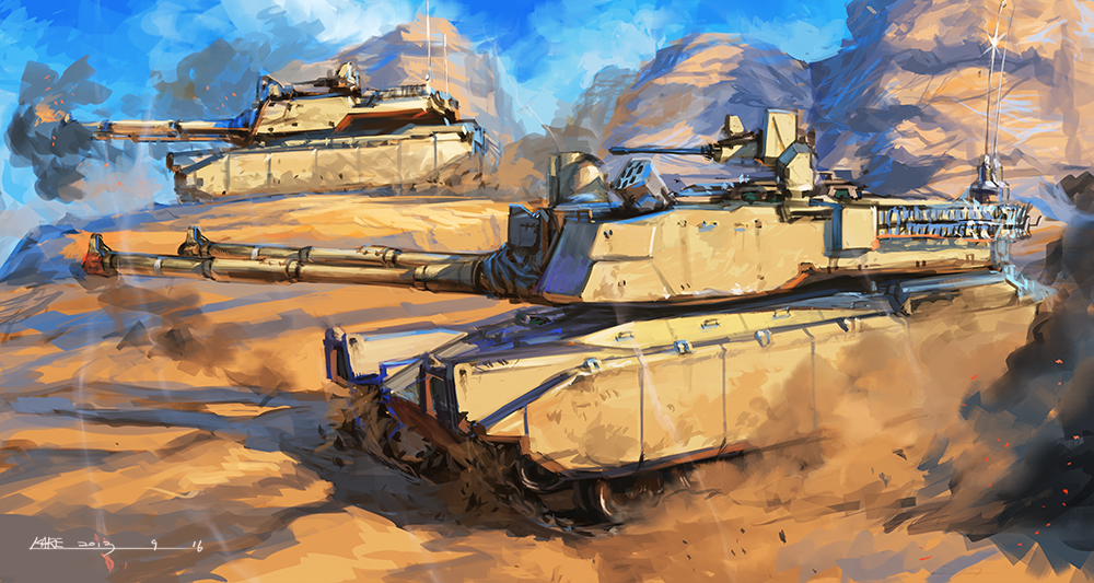 caterpillar_tracks cloud day desert gun kare_huang machine_gun military military_vehicle motor_vehicle no_humans original science_fiction sky tank vehicle_focus weapon
