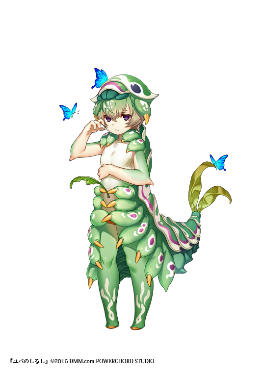 arthropod_girl bug butterfly caterpillar caterpillar_girl child colored_skin full_body green_skin insect larva monster_girl multicolored_skin simple_background solo standing white_background yuba_no_shirushi yuzu_shio