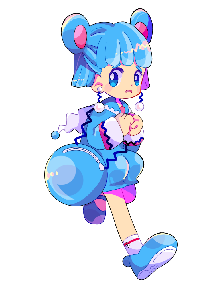 1girl animal_ears azurill bad_id bad_pixiv_id bag blue_dress blue_hair blue_shoes blush blush_stickers capelet child dress earrings female_focus flat_chest full_body gen_3_pokemon hands_up jewelry leg_up long_sleeves looking_to_the_side narumame nervous nintendo open_mouth own_hands_together personification poke_ball_theme pokemon running shoes short_hair simple_background socks solo white_background white_socks zipper_pull_tab