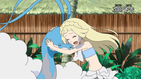 1girl altaria animated animated_gif bikini bird blonde_hair braided_hairband closed_eyes dirty dirty_clothes dirty_face gen_3_pokemon lillie_(pokemon) lowres midriff navel nintendo official_alternate_costume playing pokemon pokemon_(anime) pokemon_(creature) pokemon_sm012 pokemon_sm086 pokemon_the_series:_sun_&_moon smile swimsuit