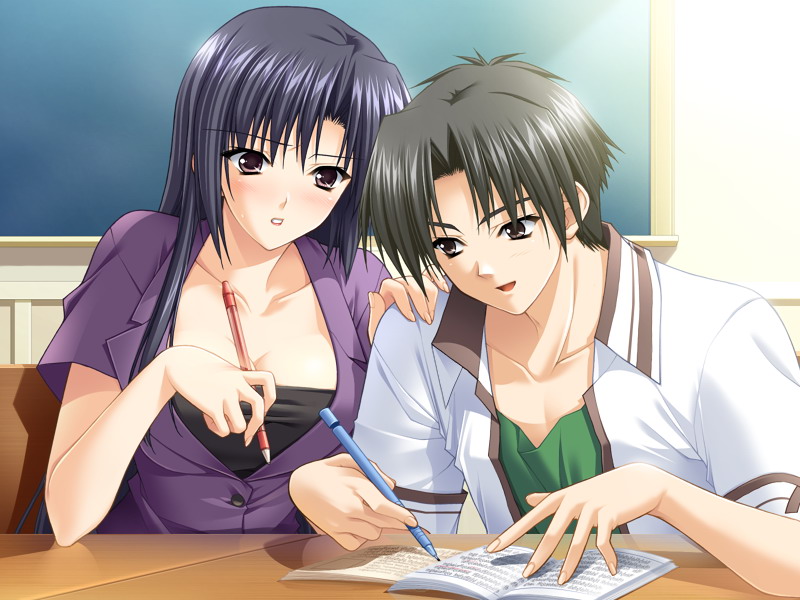 00s 1boy 1girl benibara_nadeshiko blush breasts cleavage game_cg long_hair mature_female really?_really! shuffle! suzuhira_hiro teacher teacher_and_student tsuchimi_rin