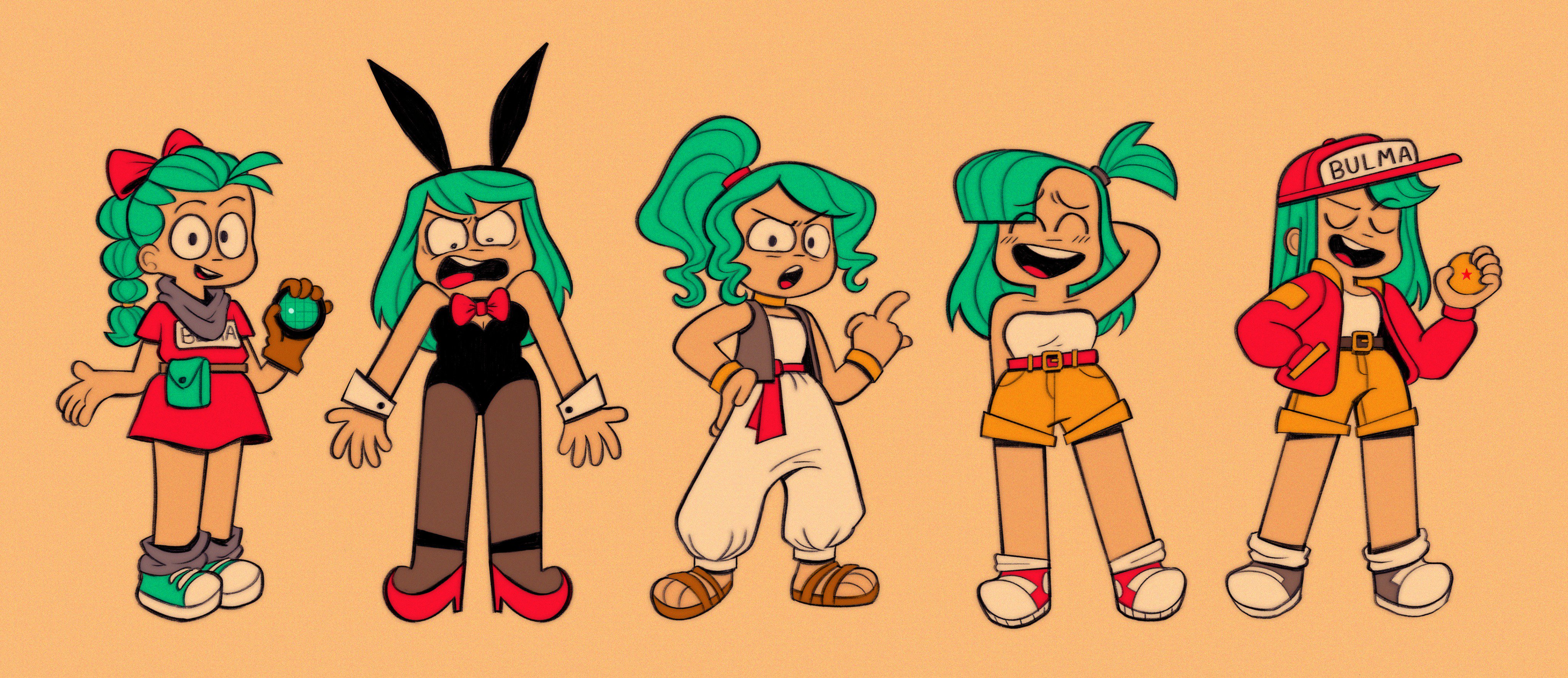 >:( >:d >:o 5girls :d ^_^ absurdres ancient_egyptian_clothes animal_ears annoyed aqua_hair aqua_shoes arm_behind_back arms_at_sides bare_arms bare_legs baseball_cap belt black_eyes black_leotard blush bow bowtie bracelet braid bulma cartoonized character_name chibi choker closed_eyes clothes_writing commentary curly_hair dragon_ball dragon_ball_(classic) dragon_ball_(object) dress english_commentary frown full_body gloves grey_shoes grey_sneakers grin hair_ribbon hand_in_own_hair hand_in_pocket happy hat high_heels highres holding jacket jewelry leotard long_hair looking_at_viewer looking_down middle_finger multiple_girls multiple_persona open_mouth outstretched_arms outstretched_hand pants pantyhose parody pink_dress pink_ribbon playboy_bunny ponytail puffy_pants purple_bow purple_bowtie purple_scarf rabbit_ears radar red_belt red_jacket red_shoes red_sneakers ribbon sandals scarf shirt shoes shorts simple_background single_glove sleeveless sleeveless_shirt smile sneakers socks standing style_parody tank_top teeth thighhighs toon_(style) v-shaped_eyebrows vest waistcoat white_pants white_shirt yellow_shorts