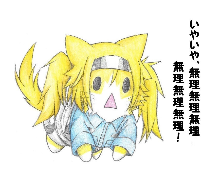 animal animalization blonde_hair cat clothed_animal collared_shirt colored_pencil_(medium) gambier_bay_(kancolle) hairband kantai_collection neko_kyo no_humans pocket shirt simple_background solid_oval_eyes traditional_media triangle_mouth twintails white_background