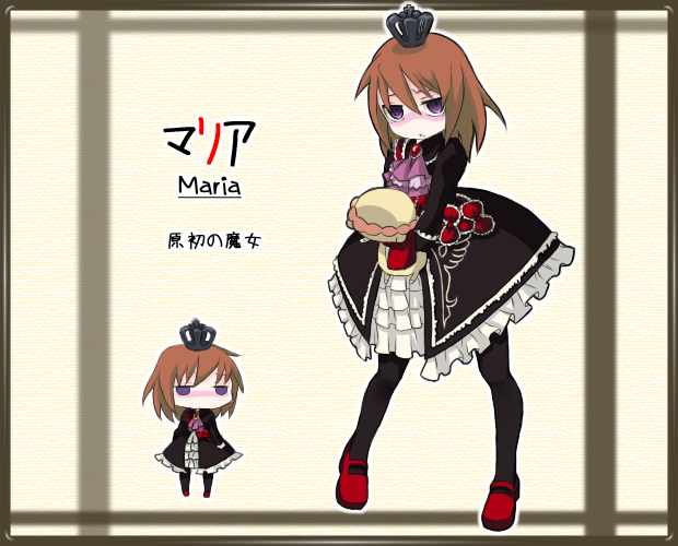 1girl 7th_dragon 7th_dragon_(series) aoi_(pixiv335232) bad_id bad_pixiv_id brown_hair crown dress maria_(umineko) mary_janes momomeno_(7th_dragon) pantyhose parody princess_(7th_dragon) purple_eyes sakutarou_(umineko) shoes short_hair stuffed_animal stuffed_toy translated umineko_no_naku_koro_ni