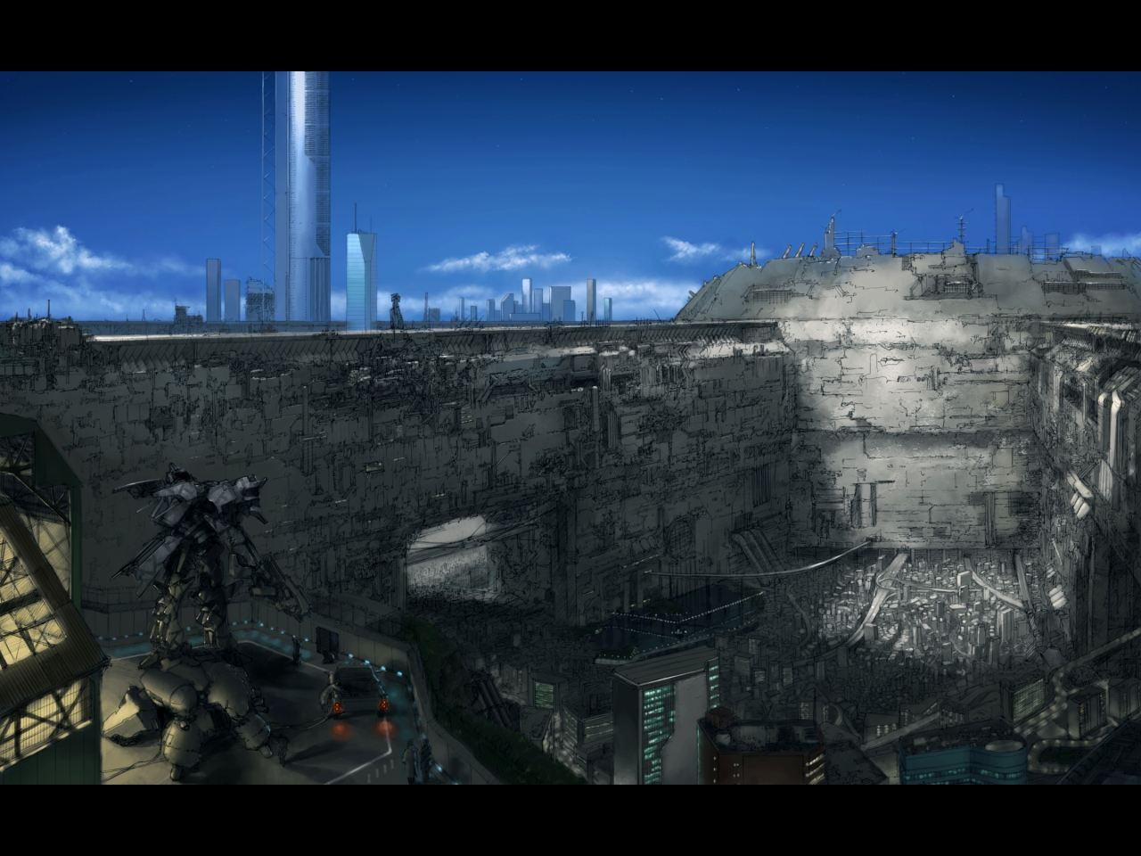 city day highway letterboxed mecha mozuo no_humans original road robot scenery sky wall