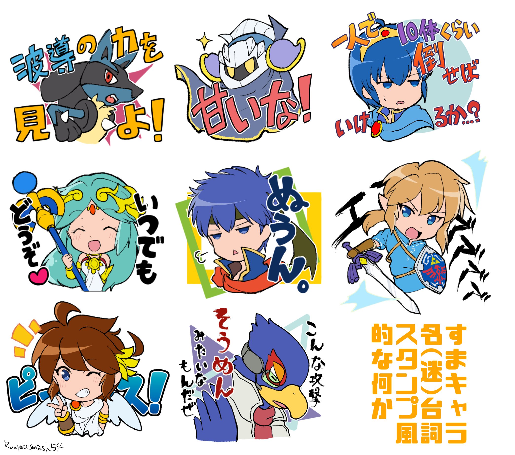 artist_request bare_shoulders blonde_hair blue_eyes blush breasts cape closed_eyes dress falco_lombardi fire_emblem fire_emblem:_mystery_of_the_emblem fire_emblem:_path_of_radiance fox_mccloud furry gen_4_pokemon gloves green_eyes green_hair hair_ornament headband highres hylian_shield ike_(fire_emblem) jewelry kid_icarus kirby_(series) link long_hair looking_at_viewer lucario marth_(fire_emblem) master_sword meta_knight nintendo open_mouth palutena pit_(kid_icarus) pointy_ears pokemon pokemon_(creature) rune_(ruupokesmash54) shield simple_background smile star_fox super_smash_bros. the_legend_of_zelda the_legend_of_zelda:_breath_of_the_wild tiara translation_request very_long_hair wings