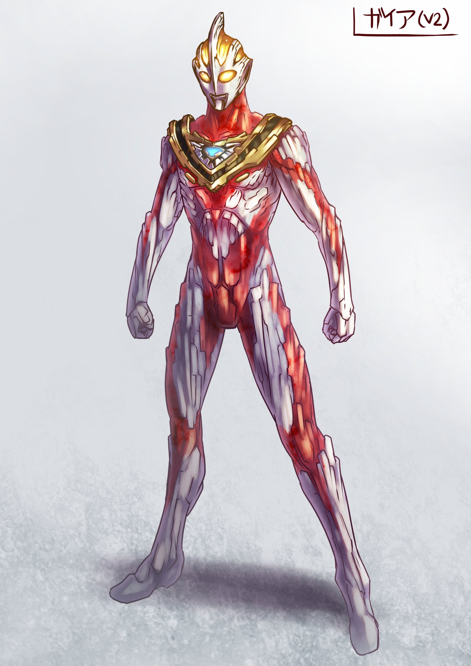 1boy armor character_profile full_body glowing glowing_eyes highres kuroda_asaki male_focus reference_sheet solo tokusatsu ultra_series ultraman_gaia ultraman_gaia_(series) ultraman_gaia_(v2)