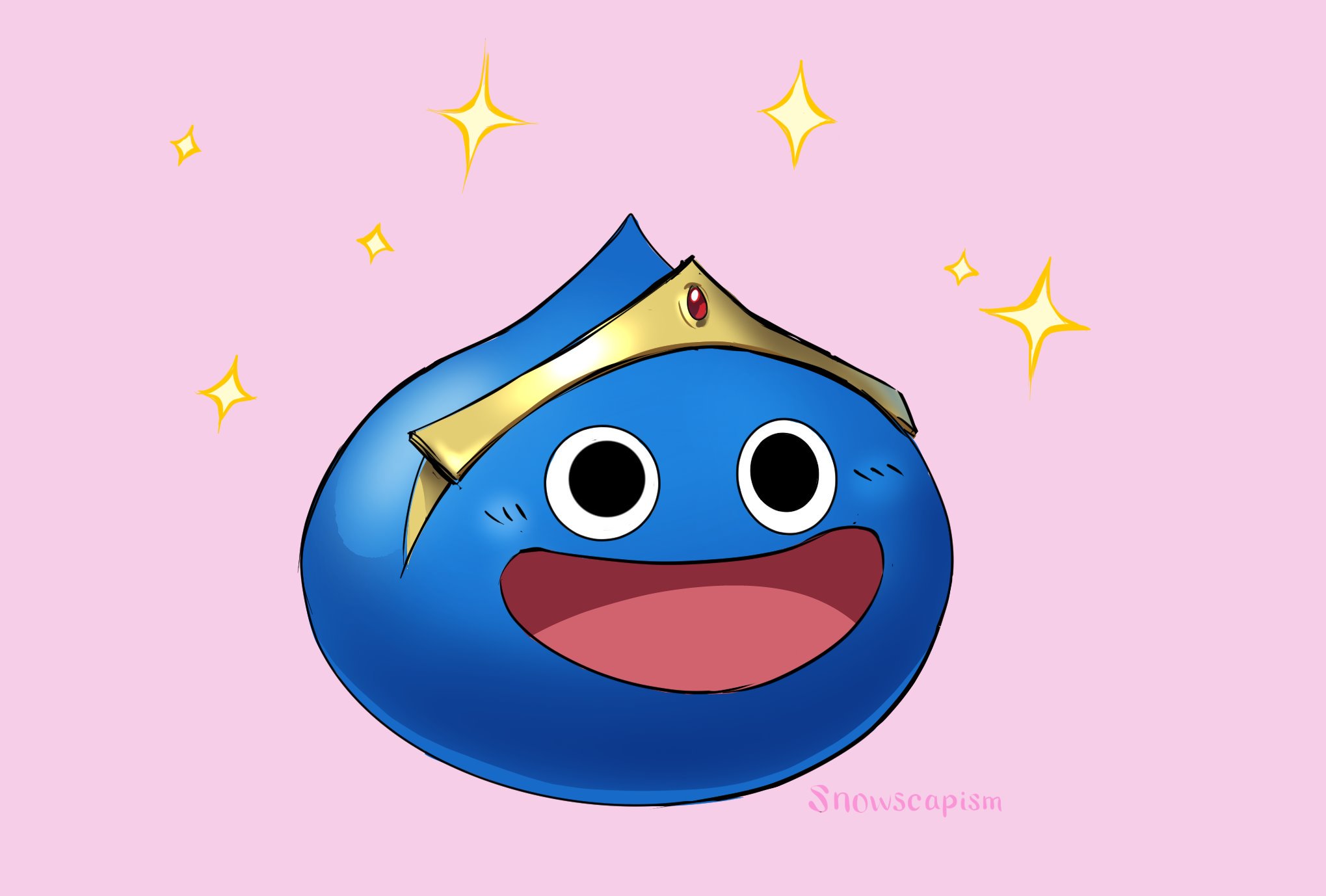 artist_name black_eyes blush dragon_quest fire_emblem fire_emblem:_mystery_of_the_emblem full_body gem happy highres jpeg_artifacts nintendo no_humans open_mouth pink_background red_gem simple_background slime_(dragon_quest) smile snowscapism solo sparkle super_smash_bros. tiara