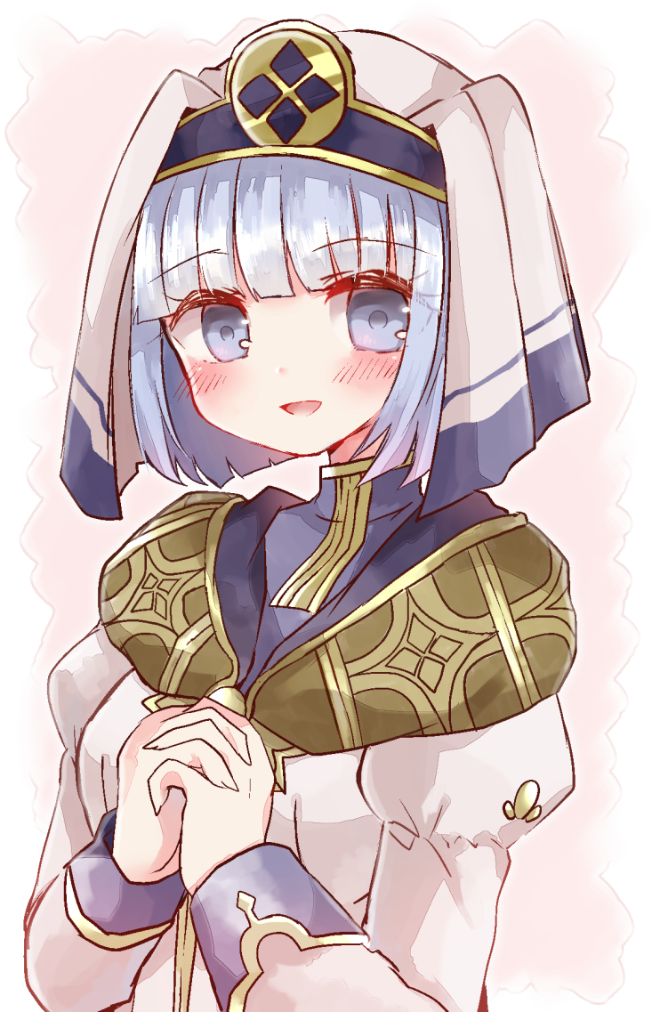 1girl blue_eyes blue_hair blush female_focus fire_emblem fire_emblem_echoes:_shadows_of_valentia nintendo open_mouth praying silque_(fire_emblem) solo sui_(aruko91) upper_body veil white_background