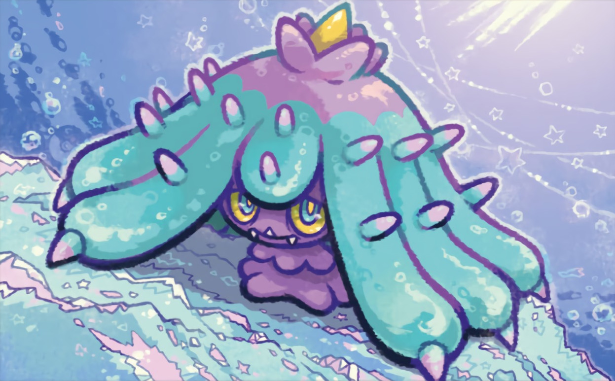 creature day full_body gen_7_pokemon mareanie nintendo no_humans official_art pokemon pokemon_(creature) pokemon_tcg solo standing third-party_source tsuruta_saya