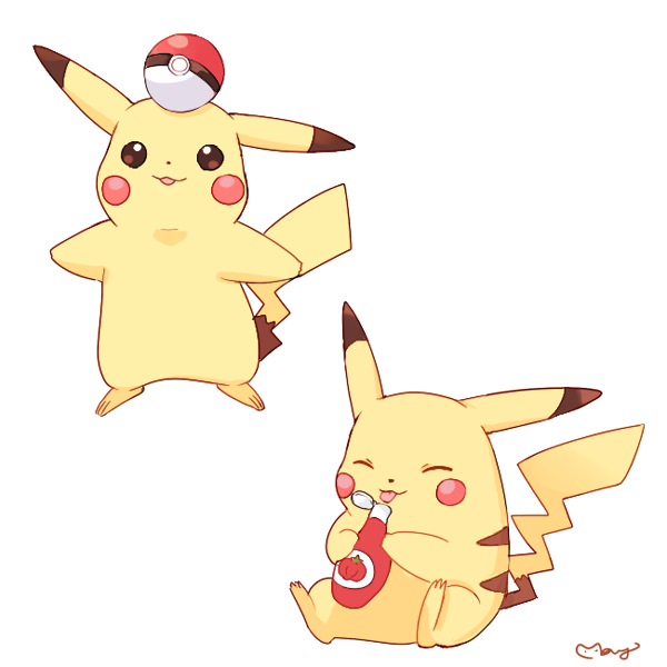bad_id bad_pixiv_id bottle closed_eyes creature gen_1_pokemon happy holding holding_bottle ketchup ketchup_bottle licking mei_(maysroom) multiple_views nintendo no_humans object_on_head pikachu poke_ball poke_ball_(basic) pokemon pokemon_(anime) pokemon_(classic_anime) pokemon_(creature) pokemon_ep042 signature sitting smile standing tongue tongue_out