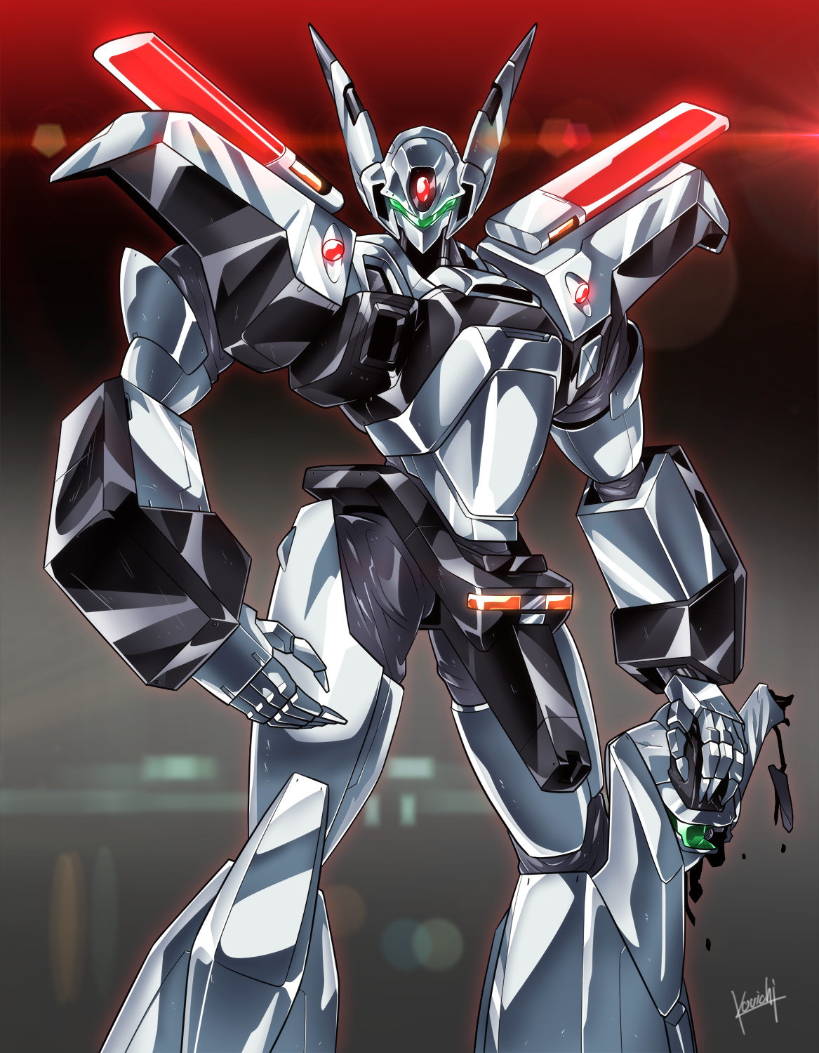 av-xo_type_zero highres holding_detached_head kidou_keisatsu_patlabor kouichi_(kouichi-129) looking_at_viewer mecha no_humans police robot signature solo standing visor