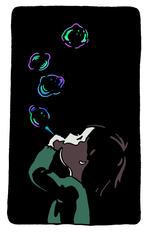1girl aqua_sweater backlighting black_background bleeding blending blood blowing_bubbles border bubble bubble_pipe child dark expressionless from_side hand_up hirasawa_minami holding long_sleeves looking_away looking_up original profile rounded_corners short_hair simple_background soap_bubbles solo sweater upper_body white_border