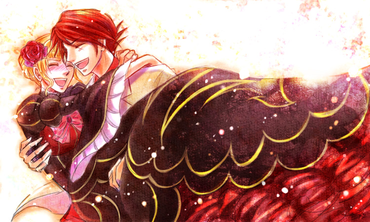 00s 1boy 1girl bad_id bad_pixiv_id beatrice_(umineko) blonde_hair blush carrying couple dress flower formal_clothes hetero kaoru red_hair smile suit umineko_no_naku_koro_ni ushiromiya_battler