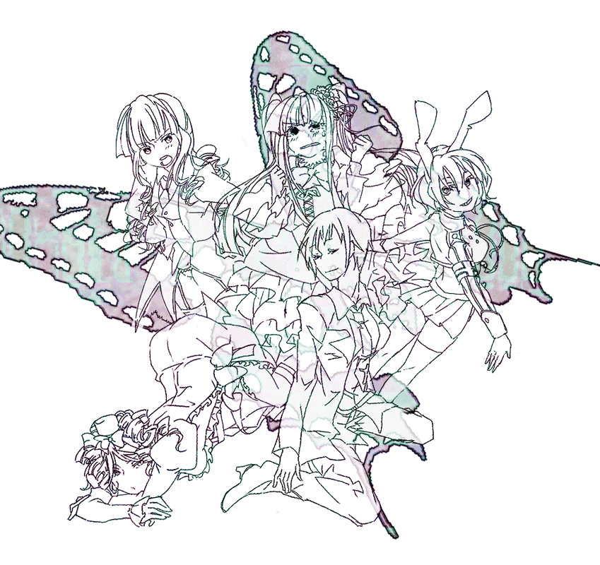 00s 2k25 5girls asmodeus_(umineko) bad_id bad_pixiv_id beelzebub_(umineko) chiester410 furudo_erika gaap_(umineko) greyscale monochrome multiple_girls stakes_of_purgatory umineko_no_naku_koro_ni ushiromiya_kyrie