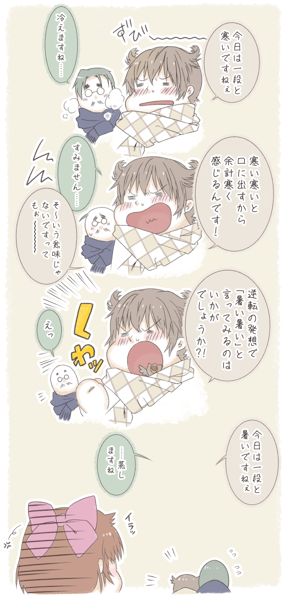 &{ID:5668712 CreatedAt:Tue Nov 10 11:08:41 -0600 2020 Score:0 Width:576 Height:1186 MD5:2f3023582ac5d9f4857e4a6113ebb8b3 Directory:2f/30 Image:2f3023582ac5d9f4857e4a6113ebb8b3.png Rating:general Source:https://www.pixiv.net/artworks/61319788 https://i.pximg.net/img-original/img/2017/02/06/23/58/13/61319788_p19.png Change:1722796707 Owner:angryzapdos CreatorID:184635 ParentID:0 Sample:0 PreviewHeight:350 PreviewWidth:169 Tags:1girl 2boys anger_vein animal_crossing annoyed argyle_clothes argyle_scarf bald bird blathers_(animal_crossing) blue_scarf blush border bow breath brewster_(animal_crossing) brother_and_sister brown_background brown_hair brown_scarf celeste_(animal_crossing) clenched_hand closed_eyes emphasis_lines facial_hair flying_sweatdrops from_behind glasses green_hair hair_bow hand_up humanization japanese_text multiple_boys multiple_views mustache nintendo open_mouth outline owl pince-nez pink_bow scarf short_hair shouting siblings simple_background speech_bubble sweat talking text_focus translation_request tsutsuji_(hello_x_2) upper_body v-shaped_eyebrows white_border white_outline winter_clothes Title: HasNotes:false HasComments:false FileURL:https://img2.gelbooru.com/images/2f/30/2f3023582ac5d9f4857e4a6113ebb8b3.png PreviewURL:https://gelbooru.com/thumbnails/2f/30/thumbnail_2f3023582ac5d9f4857e4a6113ebb8b3.jpg SampleURL: SampleHeight:0 SampleWidth:0 Status:active PostLocked:0 HasChildren:false IsVideo:false DisplayDate:10.11.2020 11:08}