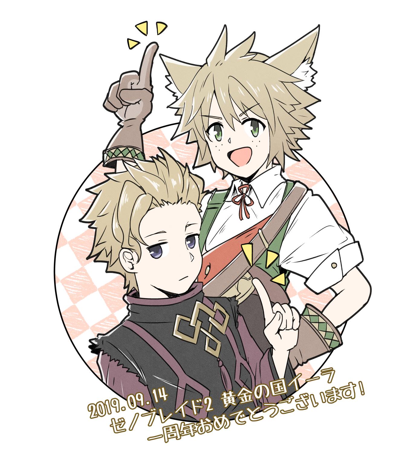 2boys aged_down animal_ears blonde_hair blue_eyes cat_boy cat_ears child freckles gloves highres jitome male_focus mikhail_(xenoblade) milton_(xenoblade) mochimochi_(xseynao) multiple_boys xenoblade_chronicles_(series) xenoblade_chronicles_2 xenoblade_chronicles_2:_torna_-_the_golden_country