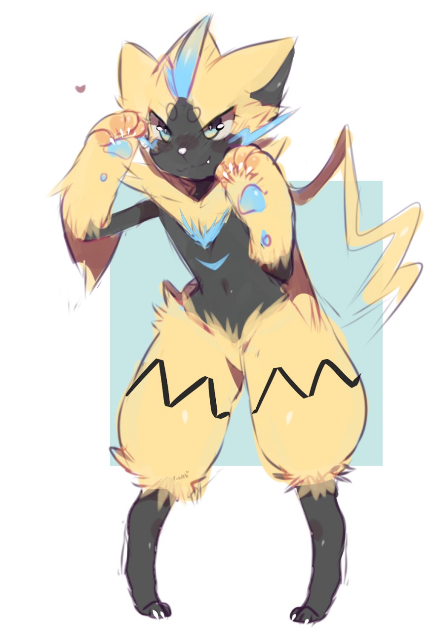 1boy :3 animal_ears animal_hands artist_name bad_furaffinity_link black_skin blue_eyes blush cat_boy cat_ears cat_tail claws closed_mouth colored_skin fang fang_out fredek666 full_body furry furry_male gen_7_pokemon hands_up happy heart highres legendary_pokemon light_blush male_focus multicolored_eyes mythical_pokemon navel nintendo nose_blush paw_pose pawpads pigeon-toed pokemon pokemon_(creature) signature simple_background sketch smile solo standing stomach tail two-tone_background whiskers white_background yellow_eyes yellow_fur zeraora