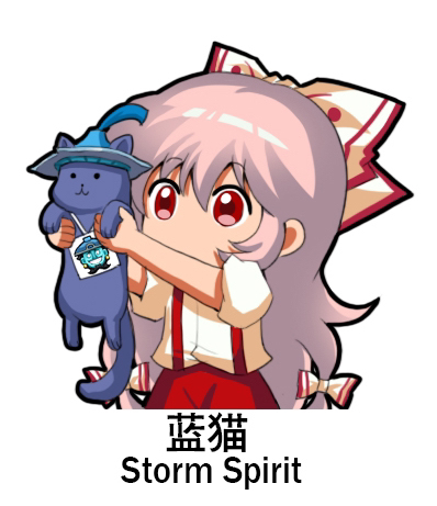 1girl animal bilingual_text bow cat chibi chinese_commentary chinese_text commentary_request cosplay dota_(series) dota_2 english_text fujiwara_no_mokou hair_between_eyes hair_bow holding holding_animal holding_cat jokanhiyou long_hair lowres meme mixed-language_text red_eyes short_sleeves silver_hair storm_spirit_(dota_2) storm_spirit_(dota_2)_(cosplay) suspenders touhou translation_request very_long_hair