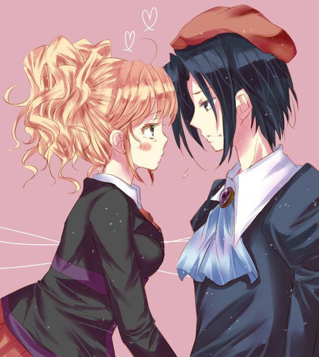 00s 1boy 1girl black_hair blonde_hair blush breasts couple hat hetero kanon_(umineko) orimoto_asami string tears umineko_no_naku_koro_ni ushiromiya_jessica